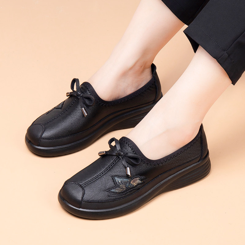 淘宝妈妈鞋老人春秋平底新款中年女鞋软底防滑舒适皮鞋中老年单鞋奶奶