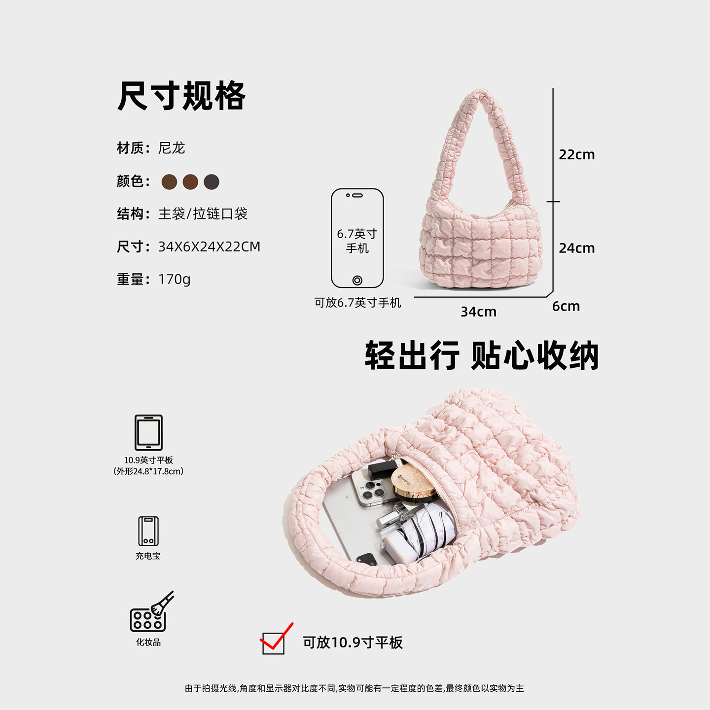 淘宝CKKUI 韩系绗缝粉色云朵泡泡包包2025秋冬腋下包通勤手提包单肩包