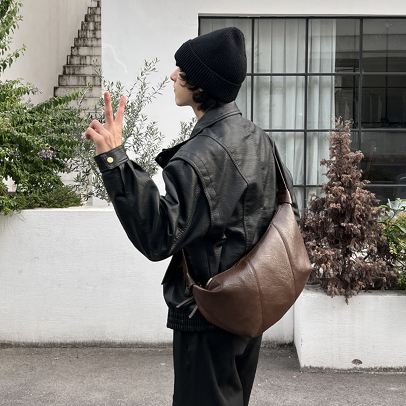 淘宝NIN小众复古单肩腋下大容量手提挎包可颂腋下牛角包男女街头日系