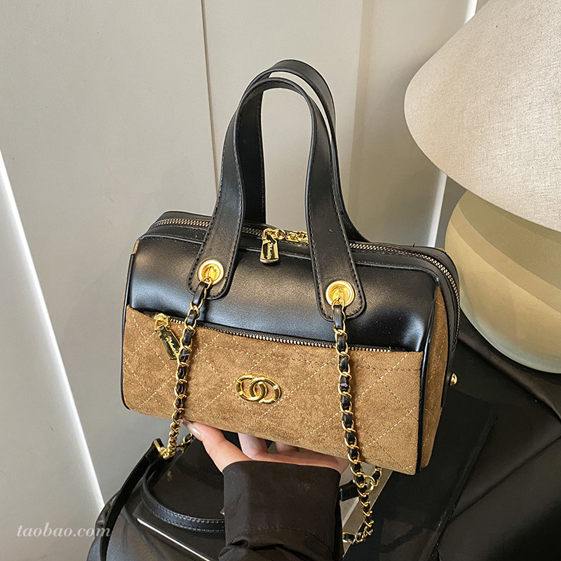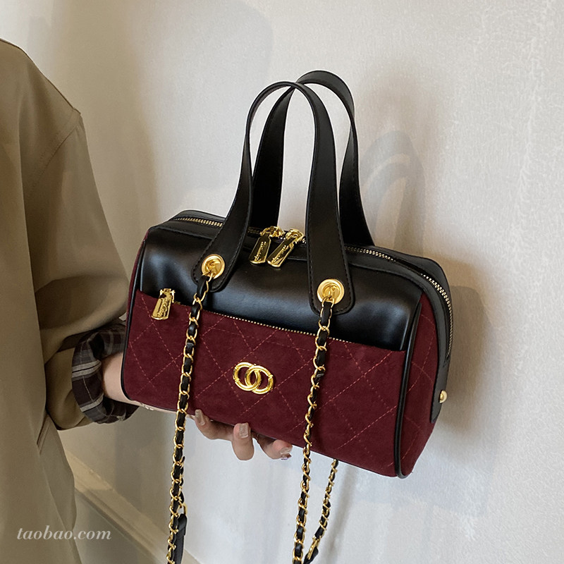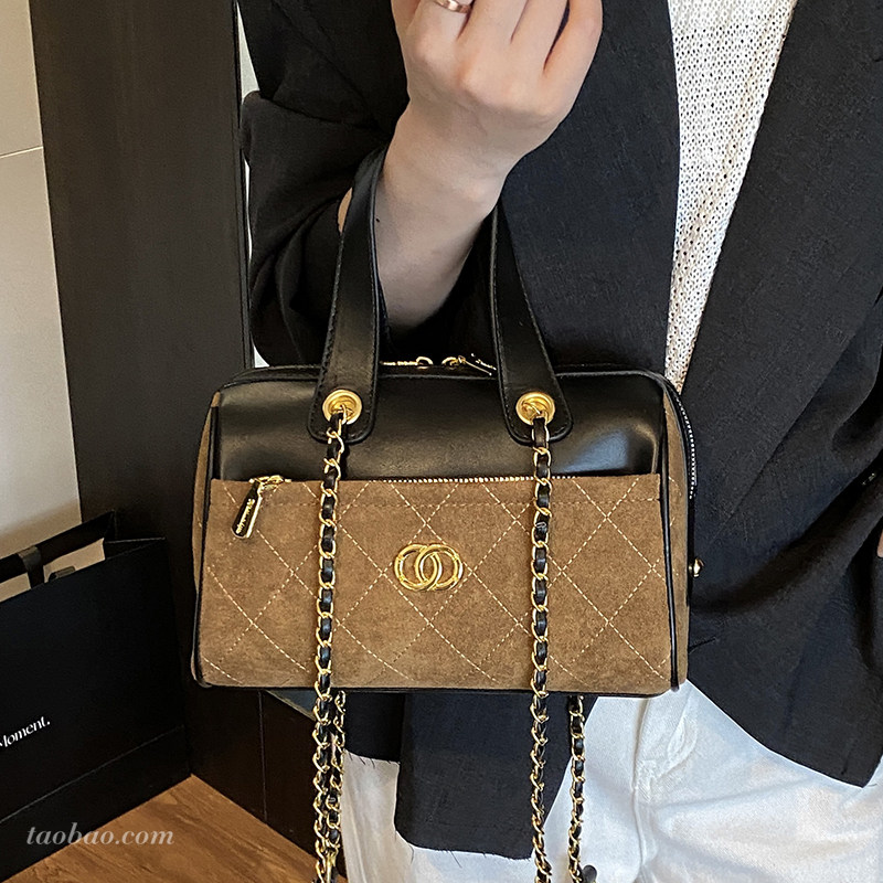 淘宝复古磨砂小众撞色拼接包包2025秋冬季百搭斜挎包时尚手提波士顿包