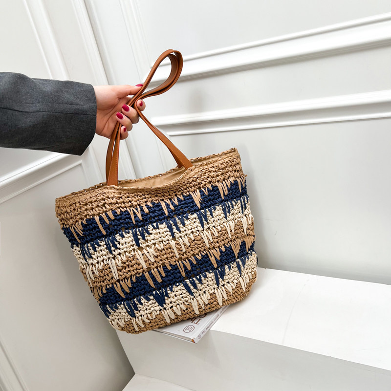 淘宝高级感撞色草编包女大容量单肩手提包度假风编织托特包2026夏新款