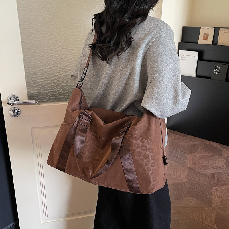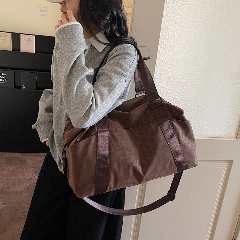 这款大容量豹纹短途出差手提旅行包,专为现代女性设计,兼具时尚与实用。采用轻便耐磨材质,重量轻盈却承重力强,轻松容纳衣物、鞋履、洗漱用品及健身装备。多隔层收纳设计,分类清晰,取放便捷,满足出差、短途旅行或日常健身需求。豹纹元素个性吸睛,彰显独特品味,手提与肩背两用,适应不同场景。无论是机场通勤、周末出行,还是健身房往返,都能轻松应对。大容量不臃肿,折叠后小巧易存,是女性出行的理想伴侣,让每一次出行都从容有型。