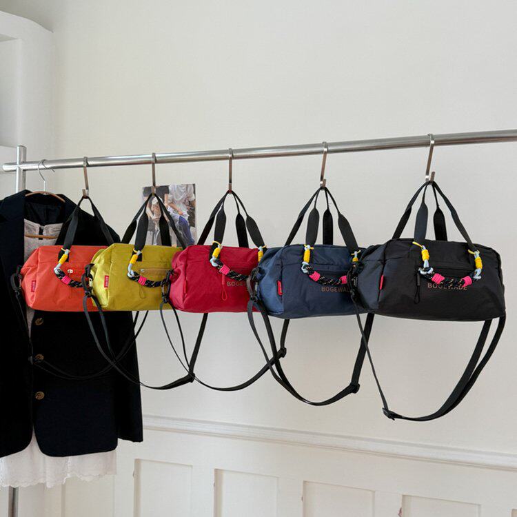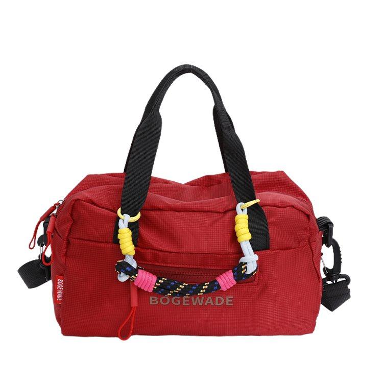 红色帆布包女2026新款运动圆筒包手提健身小包休闲旅游骑行斜挎包