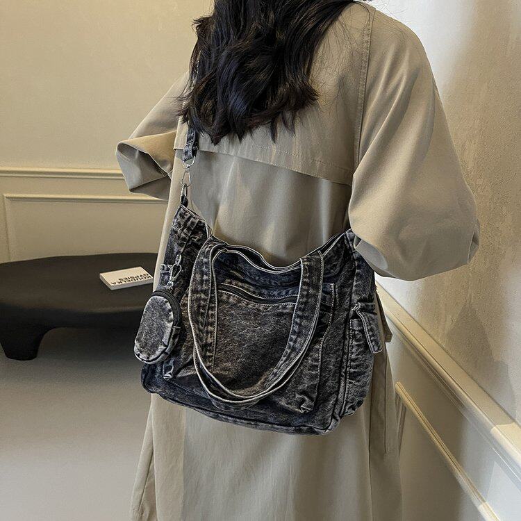 淘宝日系原宿风牛仔帆布包女单肩包女包大容量手提包包2024新款托特包