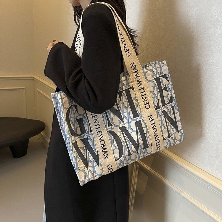 淘宝袋鼠 夏季大容量字母女时尚通勤手提购物袋大学生上课单肩托特包