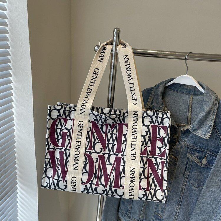 淘学生通勤日系白色托特包包女帆布包2025新款手提单肩帆布袋大容量