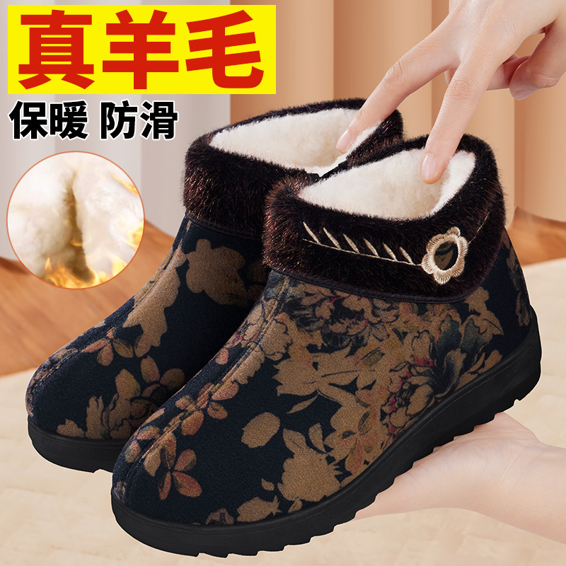 冬季纯羊毛女鞋老北京布鞋加厚东北老人大棉鞋防滑保暖妈妈棉鞋女