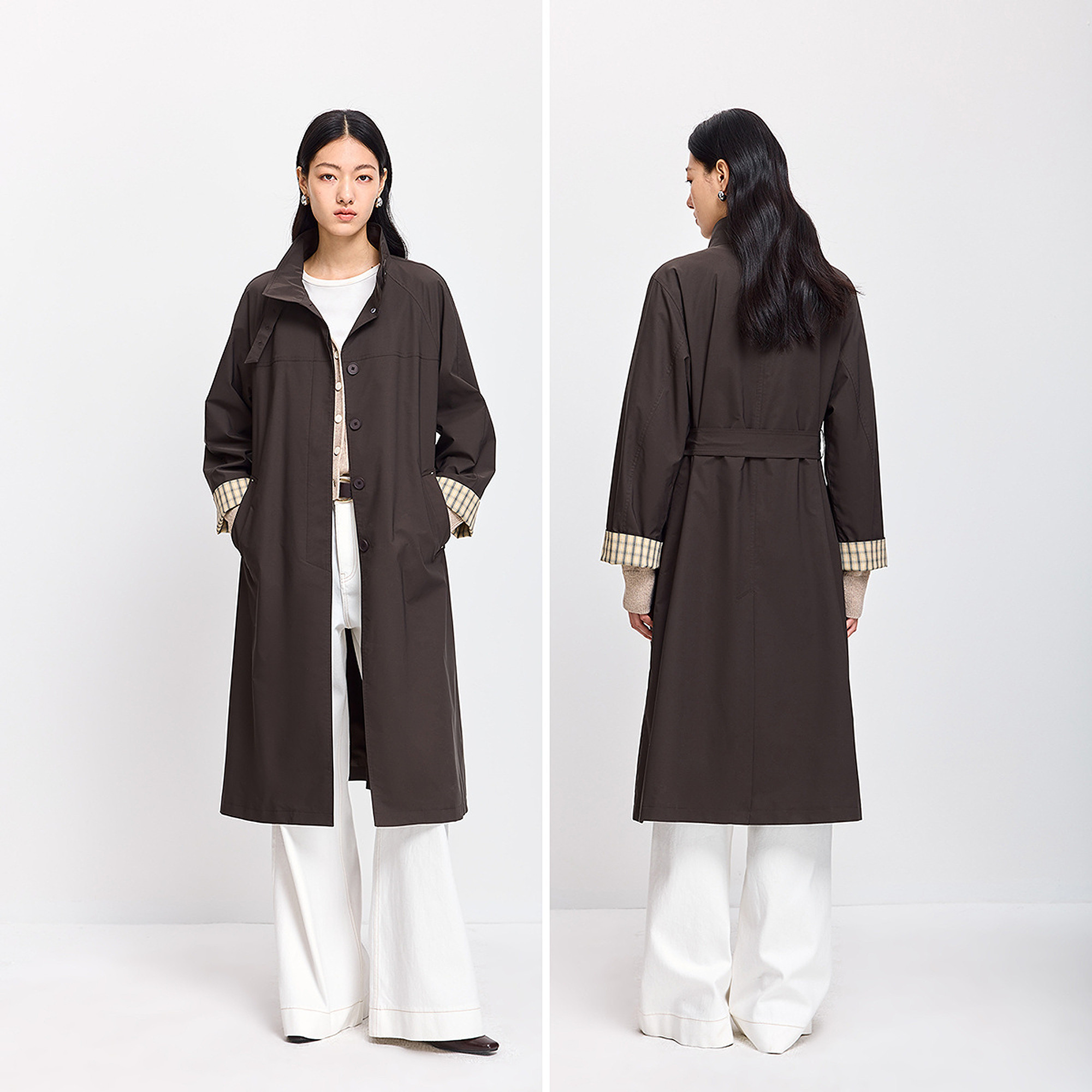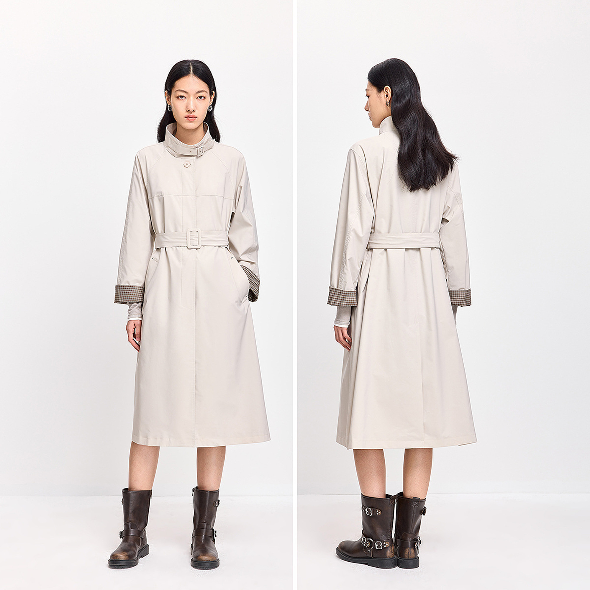 LILY 2026春新款女装风衣外套,融合复古经典与现代通勤美学,采用小高领设计,优雅保暖,凸显颈部线条。宽松版型搭配精致腰带收腰设计,轻松勾勒身形,兼顾舒适与时尚。精选优质面料,垂坠挺括,质感出众。简约利落的剪裁,适合多种场合,无论是日常休闲还是职场通勤皆能轻松驾驭。多色可选,百搭实穿,是春日衣橱不可或缺的时尚单品。细节处彰显匠心,复古韵味中透露出现代女性的独立与自信,演绎低调而高级的穿搭格调。