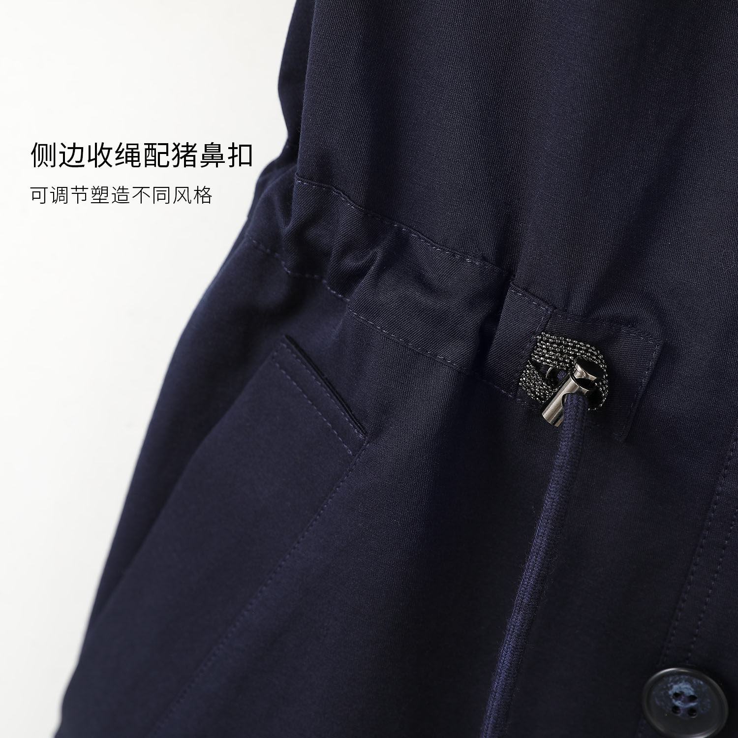 YBAI/亦白2026春新款时尚显瘦百搭翻领双排扣抽绳收腰风衣上衣,融合经典与潮流设计,专为现代女性打造。采用优质挺括面料,垂感佳且不易皱,轻松穿出高级质感。经典翻领搭配双排扣设计,干练利落,彰显优雅气质;腰部内置抽绳收腰,随心调节松紧,凸显曼妙身姿,视觉显瘦效果出众。多口袋实用设计,兼顾美观与功能性。无论是通勤、休闲或约会场合,皆可轻松驾驭,实现一衣多穿。浅卡其、经典黑等多色可选,百搭不挑人,是春季衣橱不可或缺的时尚单品。