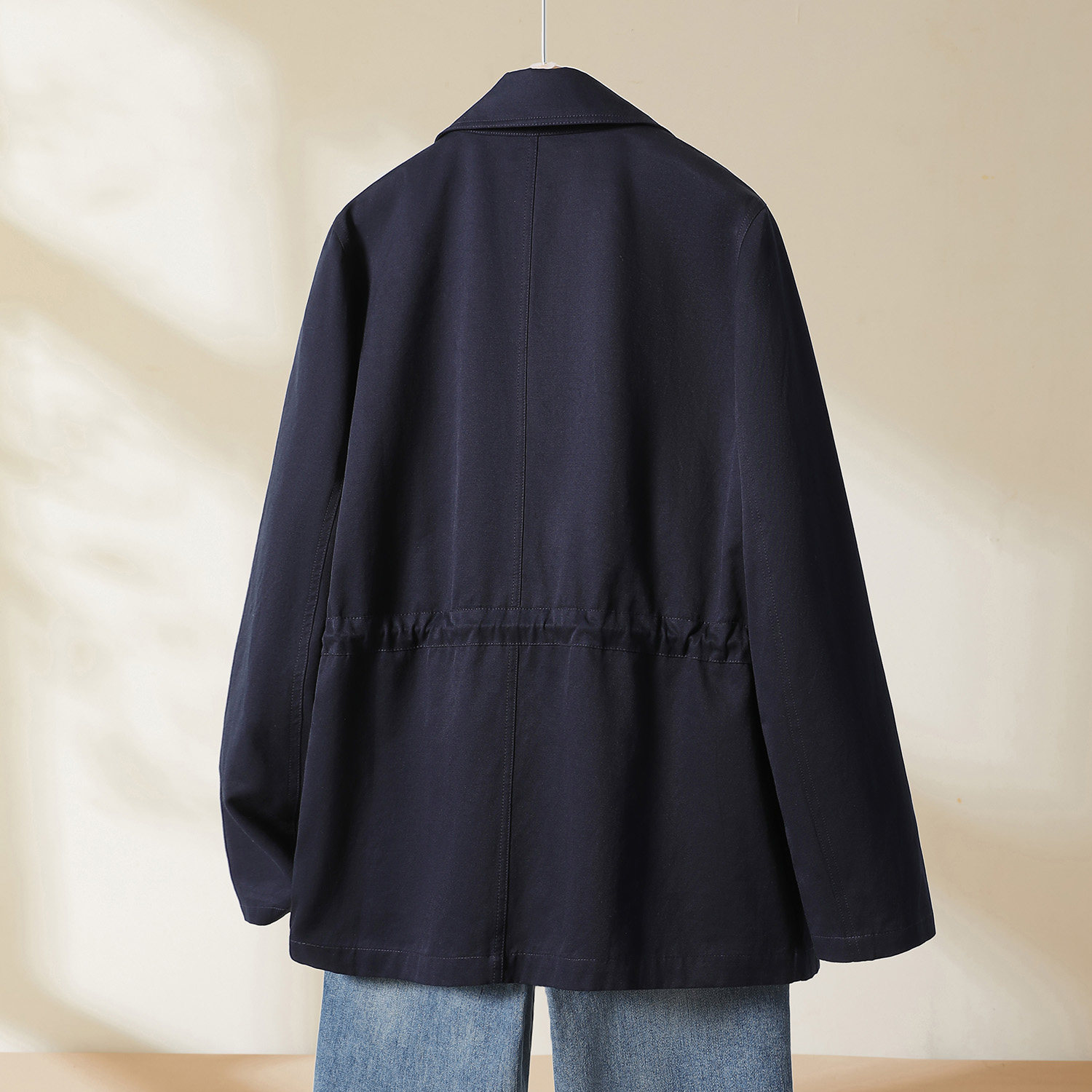 淘宝YBAI/亦白 2026春新款时尚显瘦百搭翻领双排扣抽绳收腰风衣上衣女