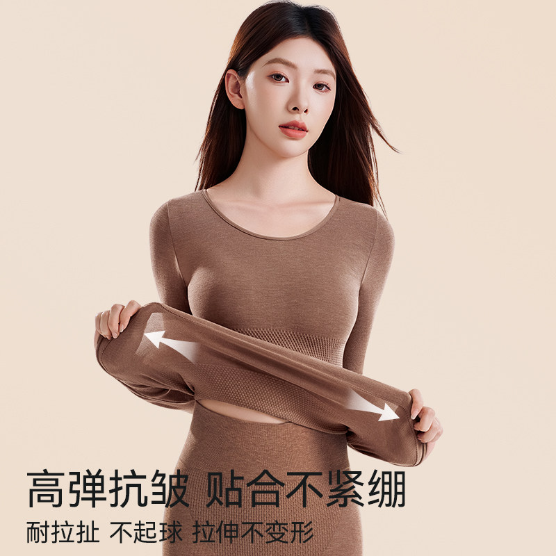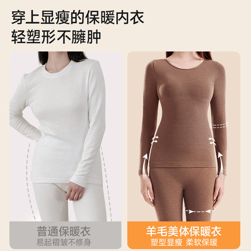天猫都市丽人保暖内衣女羊毛发热紧身美体单件打底上衣秋衣秋裤套装冬