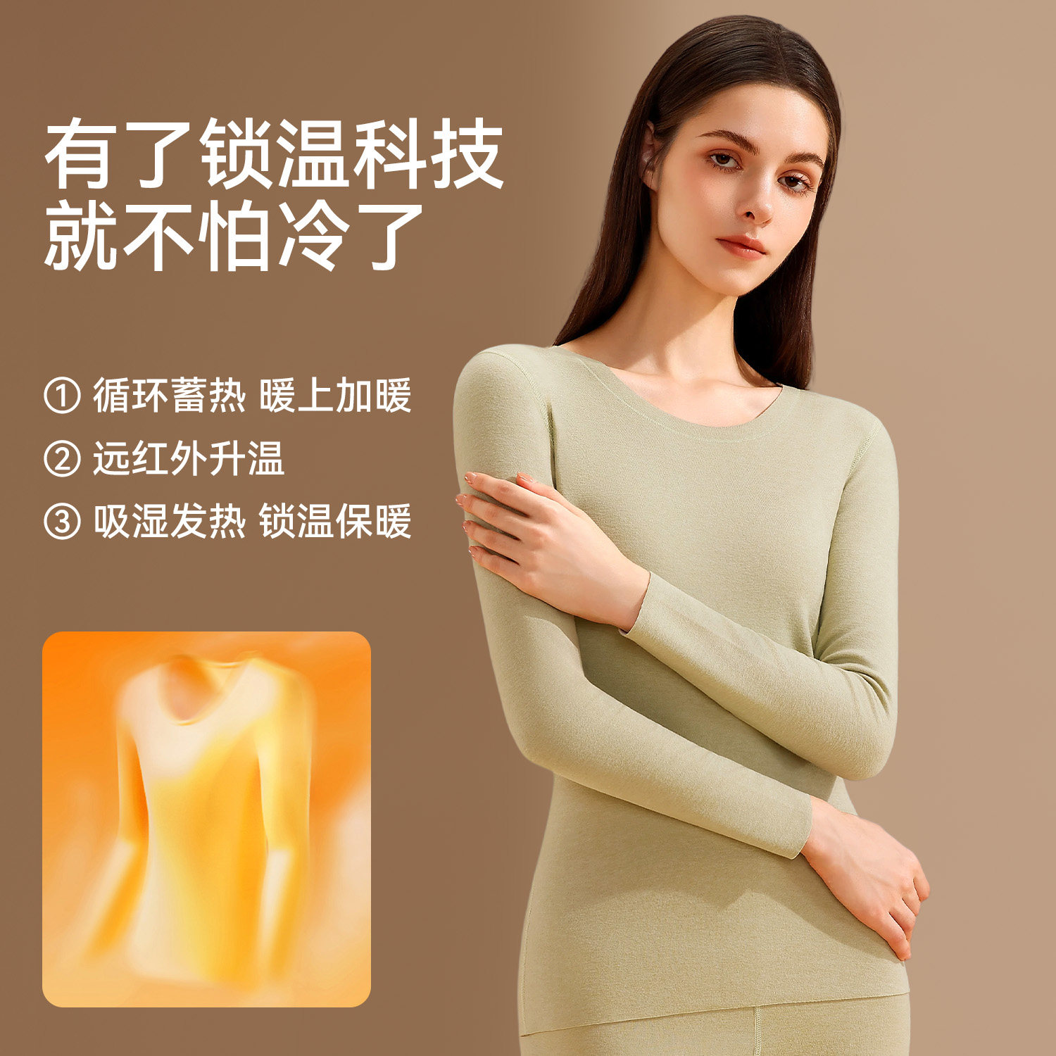 天猫都市丽人保暖套装羽绒蚕丝发热抗菌贴身秋衣秋裤女加绒加厚美肤衣