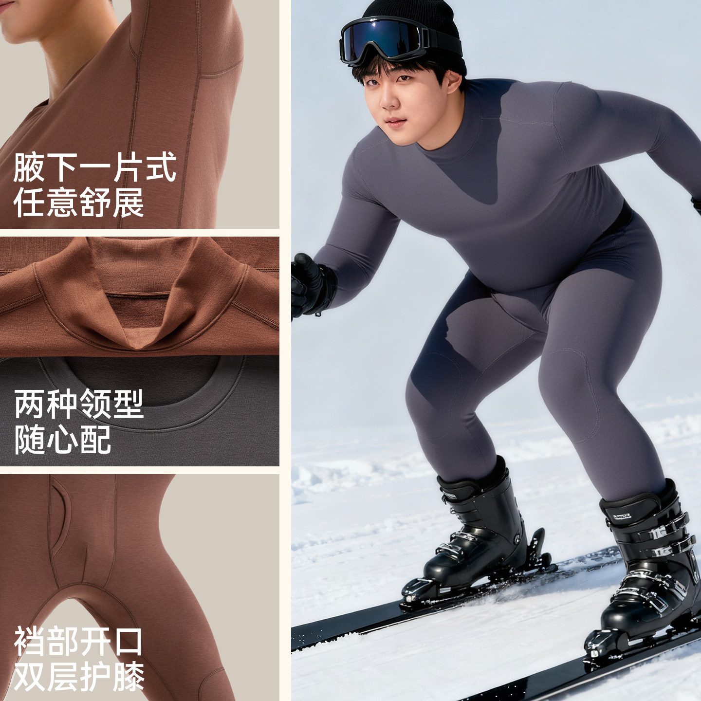 天猫蛋白绒保暖内衣男士秋冬新款羊毛发热肌底衣大码德绒秋衣秋裤套装
