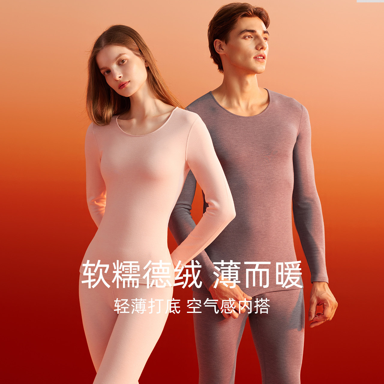 天猫红豆绒男女士轻薄/中厚款保暖内衣抗静电秋衣秋裤秋冬打底套装