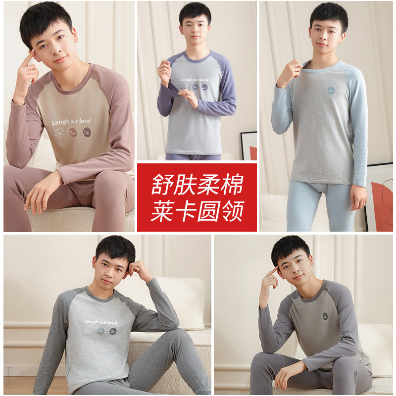 天猫青少年秋衣秋裤套装纯棉男大童保暖内衣男士初中高中学生全棉毛衫
