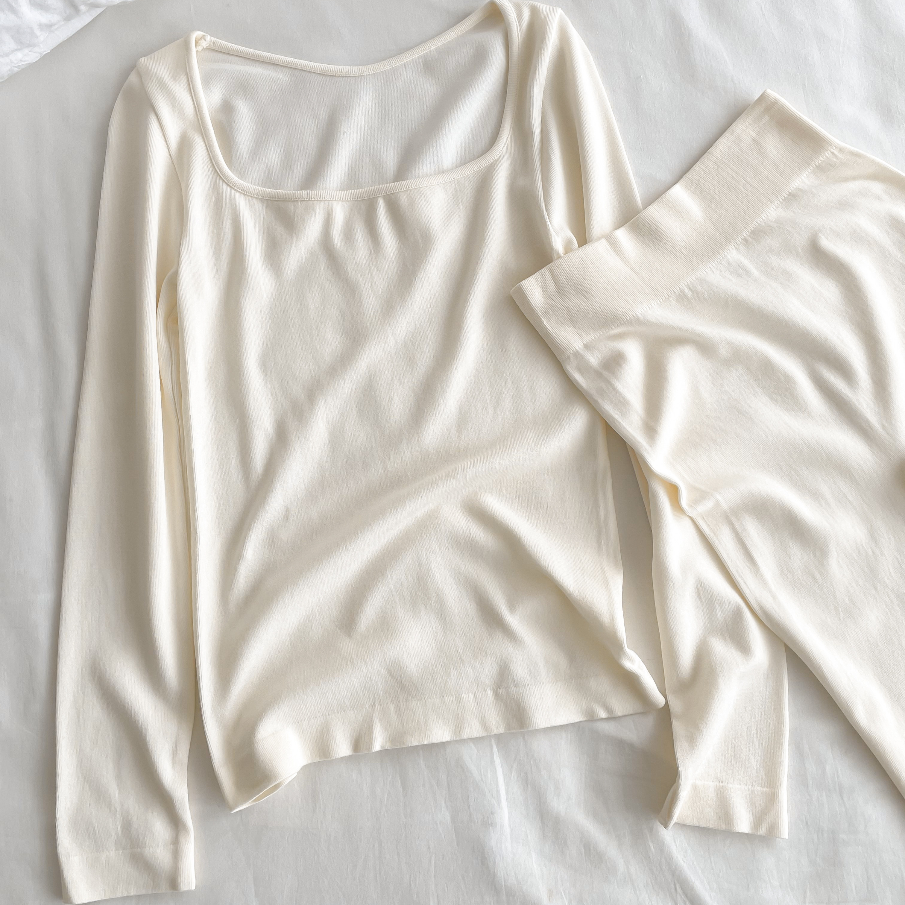 淘宝法式保暖打底衫内衣女秋冬套装超柔软糯防静电显瘦方领秋衣秋裤