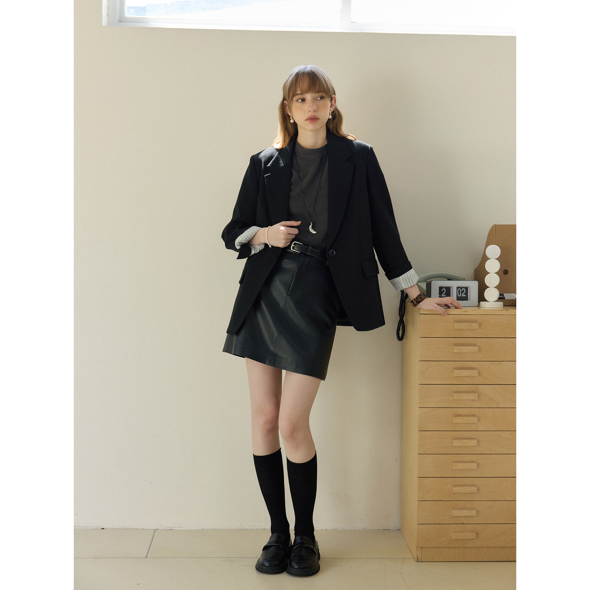 【盈动绽放】珂莱蒂尔2025春季新款黑色醋酸修身单排扣西装外套女