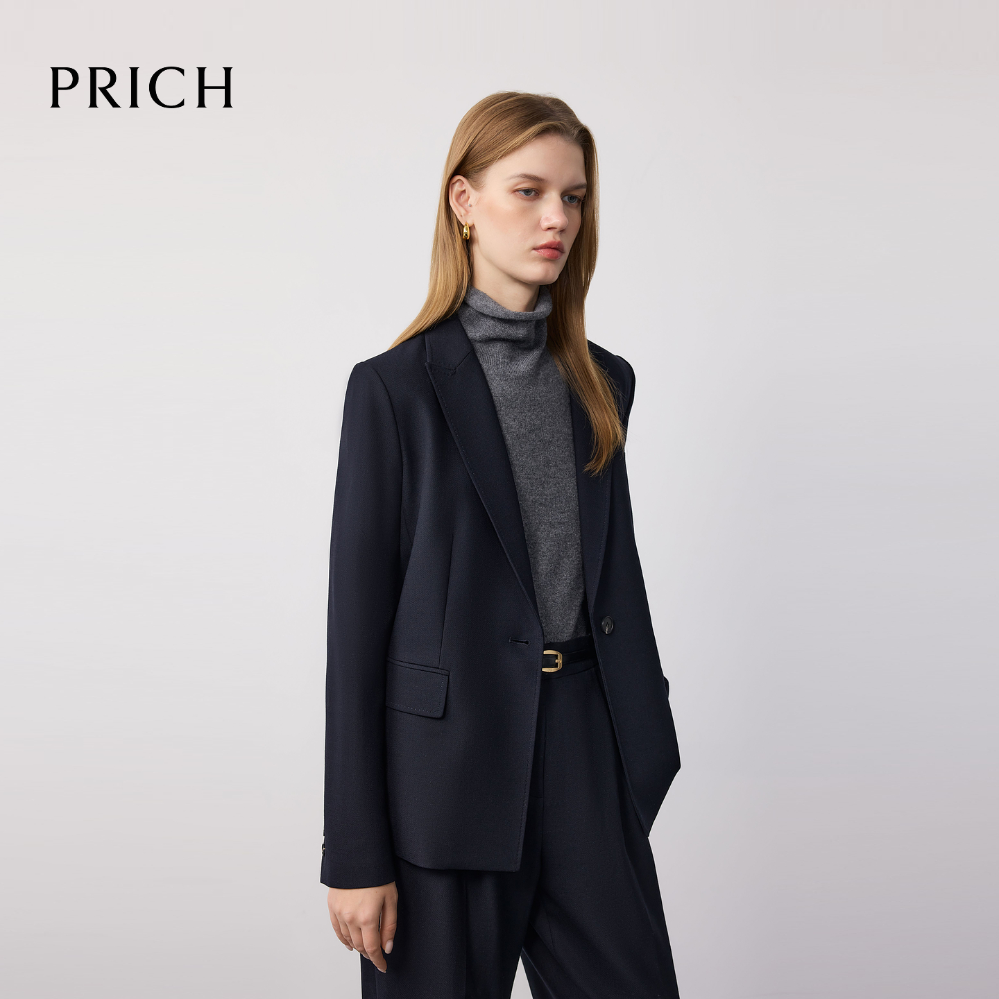 天猫PRICH简约高智职场羊毛斜纹肌理西装2025冬季新款通勤修身外套女