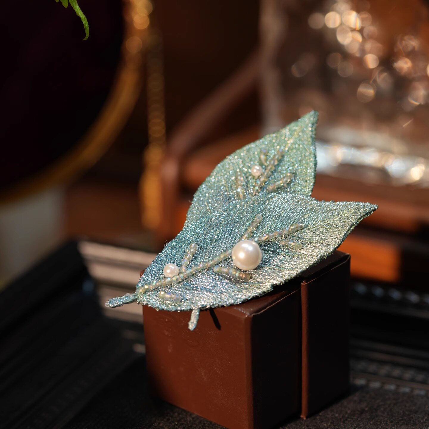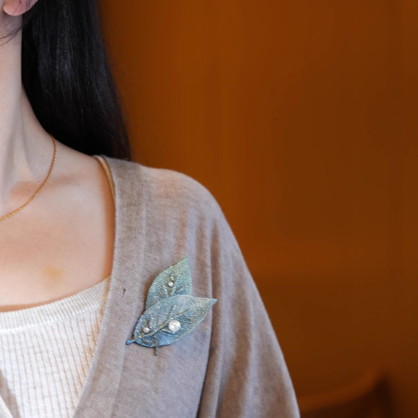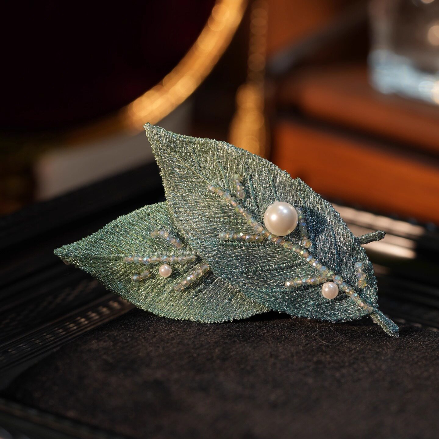 淘宝胸针高端精致时尚设计感小众刺绣渐变叶子高端礼物胸花秋冬别针