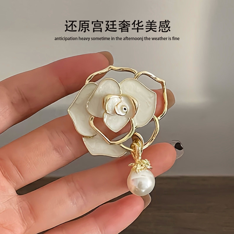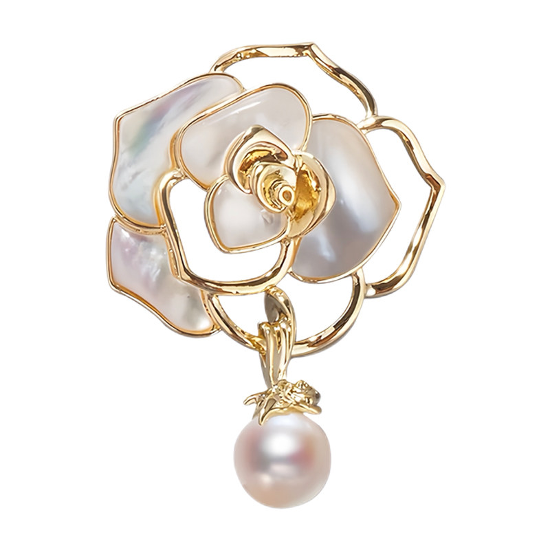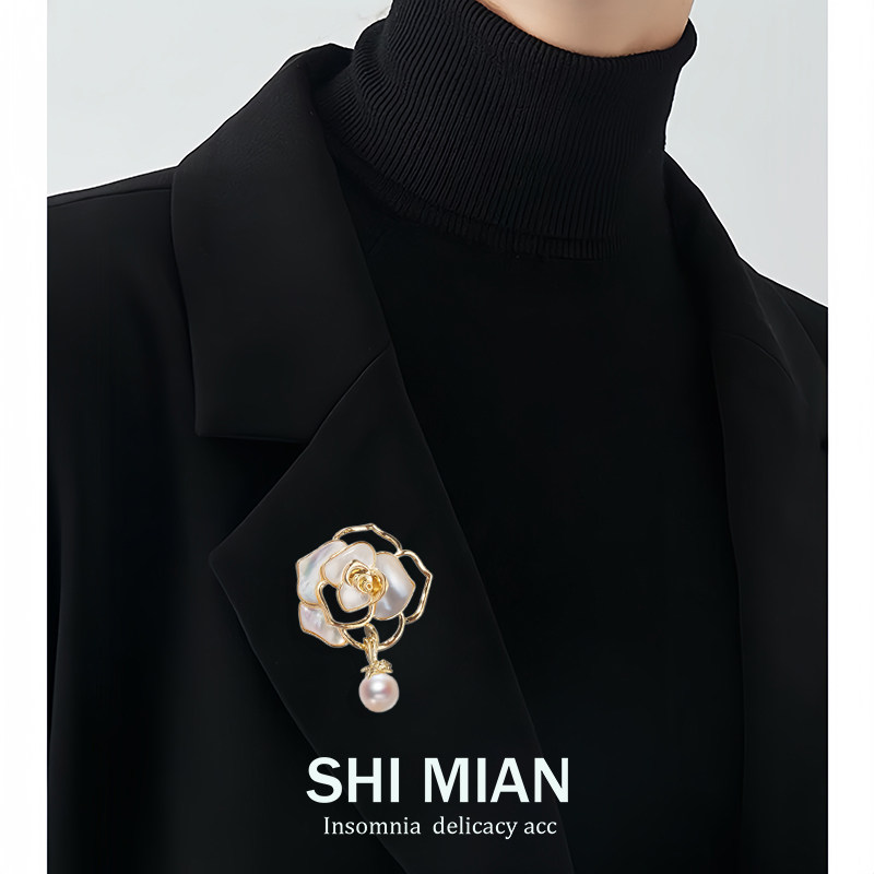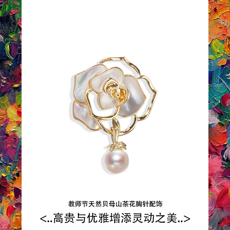 淘宝教师节礼物小香风天然贝母山茶花高档胸针女奢华胸花大衣西装别针