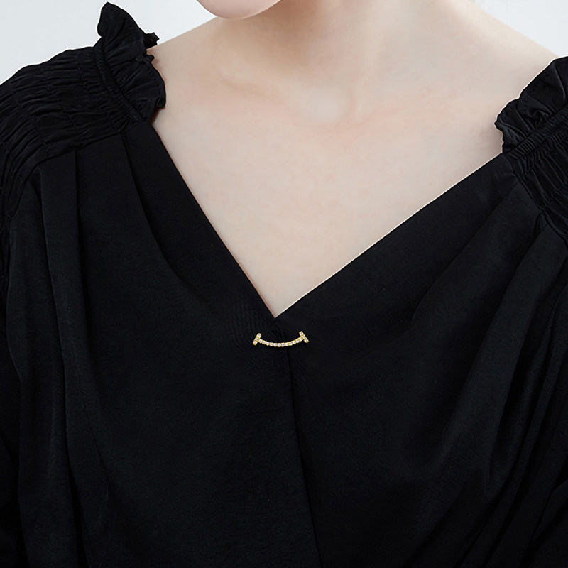 这款精致微笑防走光胸针扣,以极简设计融合实用美学,专为女性衬衫领口设计。采用小众高级感造型,小巧别致的“微笑”元素点缀,既俏皮又优雅,轻松提升穿搭质感。隐形别针结构稳固贴合,有效防止走光困扰,同时不伤衣物,适用于真丝、雪纺等多种面料。金属材质经精细抛光处理,光泽柔和,佩戴舒适无负担。无论是通勤、约会或日常出行,都能为简约衬衫增添一抹设计亮点。既是贴心实用的防走光神器,也是彰显品味的时尚配饰,低调中尽显独特格调,是精致女性衣橱里的必备小心机。