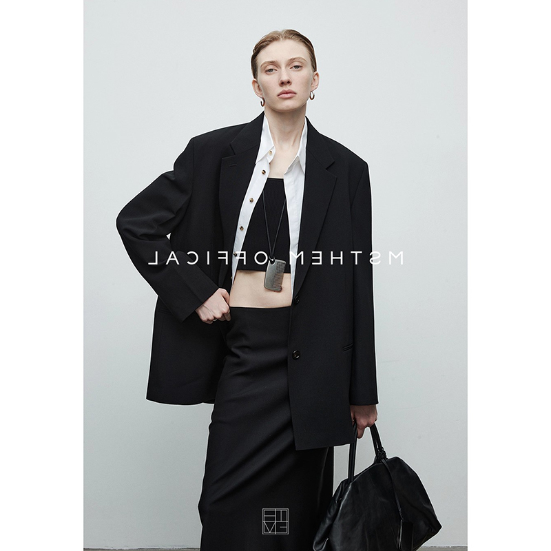 设计感金扣廓形黑色西装外套女春秋新款韩系英伦风气质西服上衣