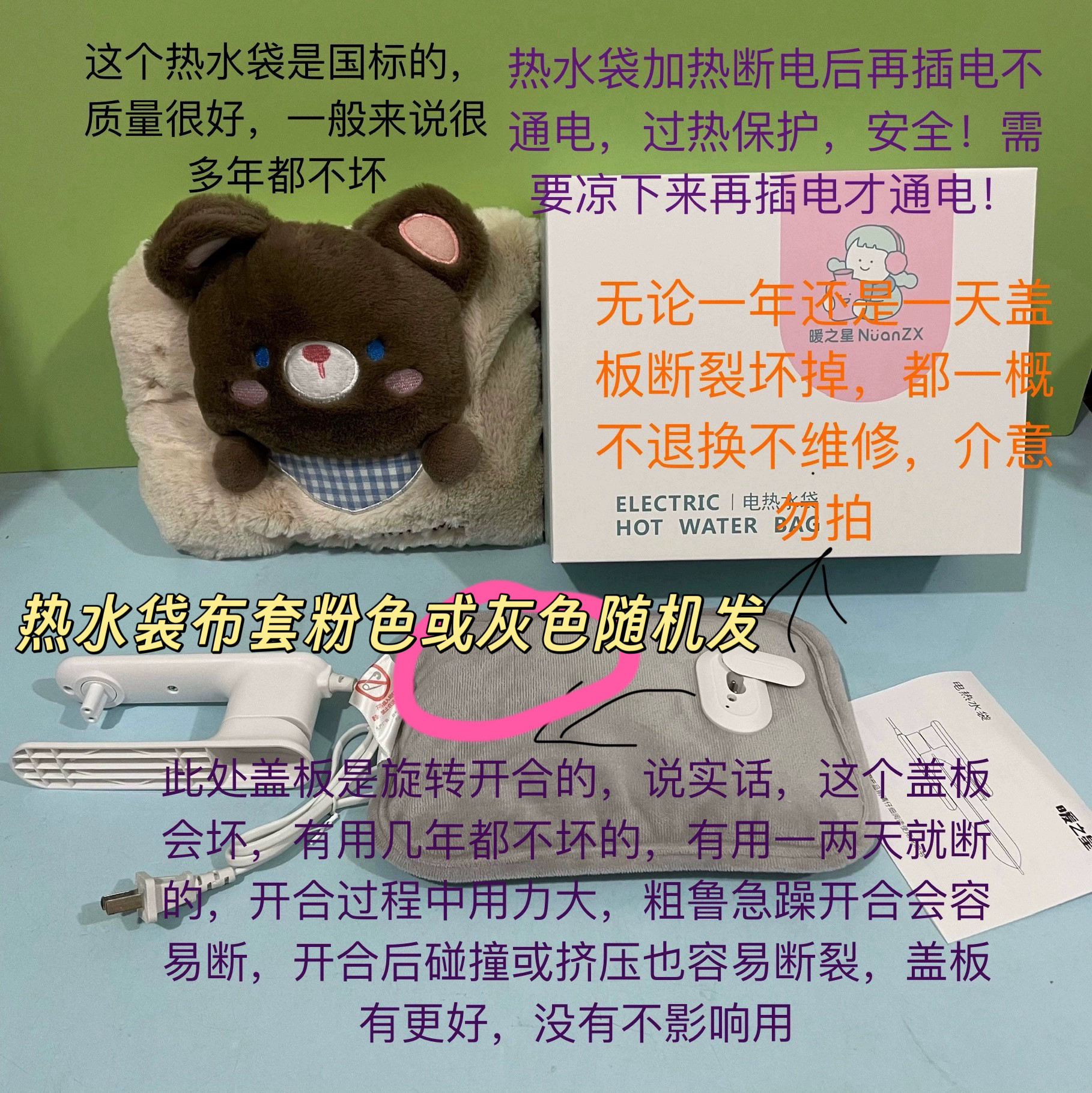 淘宝暖之星6006电热水袋绒布毛绒卡通防爆温控水电分离防干烧自动断电