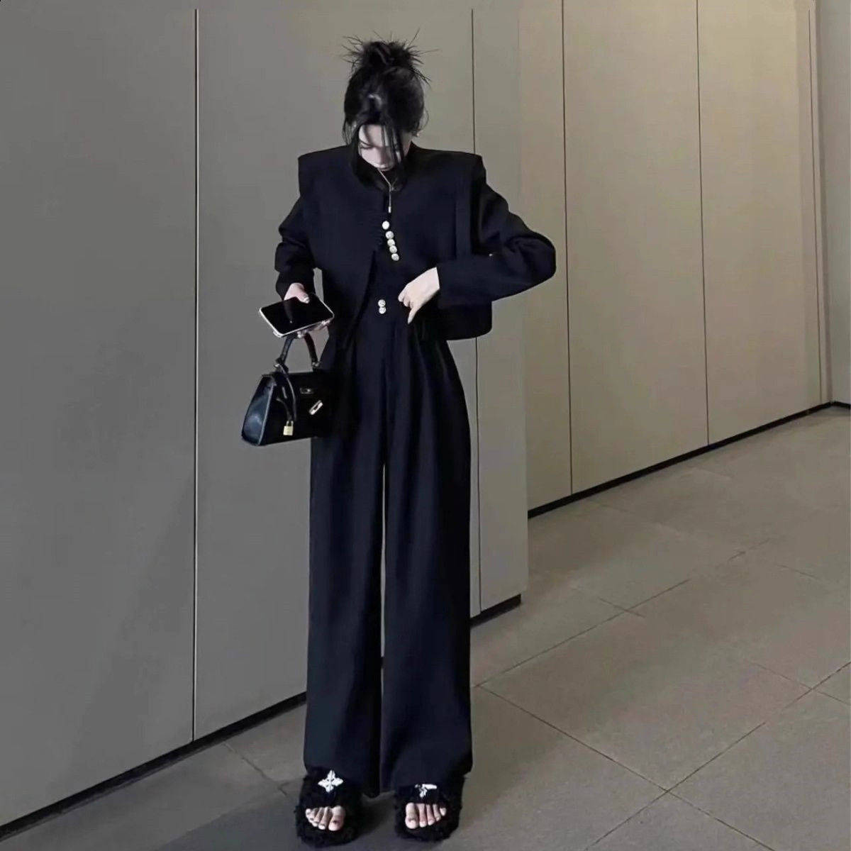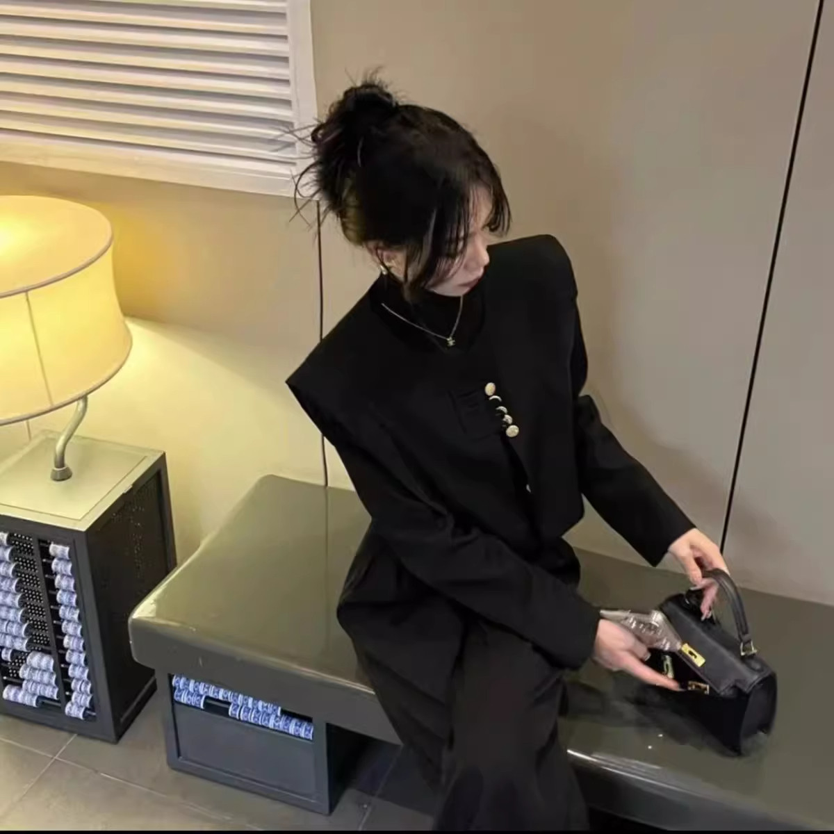 这款网红爆款国风西装套装,融合传统东方美学与现代时尚设计,专为秋季打造。上衣采用精致盘扣点缀立领设计,凸显优雅气质,剪裁利落,展现女性干练风范;高腰阔腿裤拉长腿部线条,舒适垂坠,行走间尽显飘逸灵动。整体采用优质面料,挺括有型又不失亲肤感,配色典雅大方,适合通勤、约会或日常出街。两件套搭配省心省力,轻松穿出高级感,是追求气质与时尚并存女性的必备单品,演绎新中式穿搭新风尚。