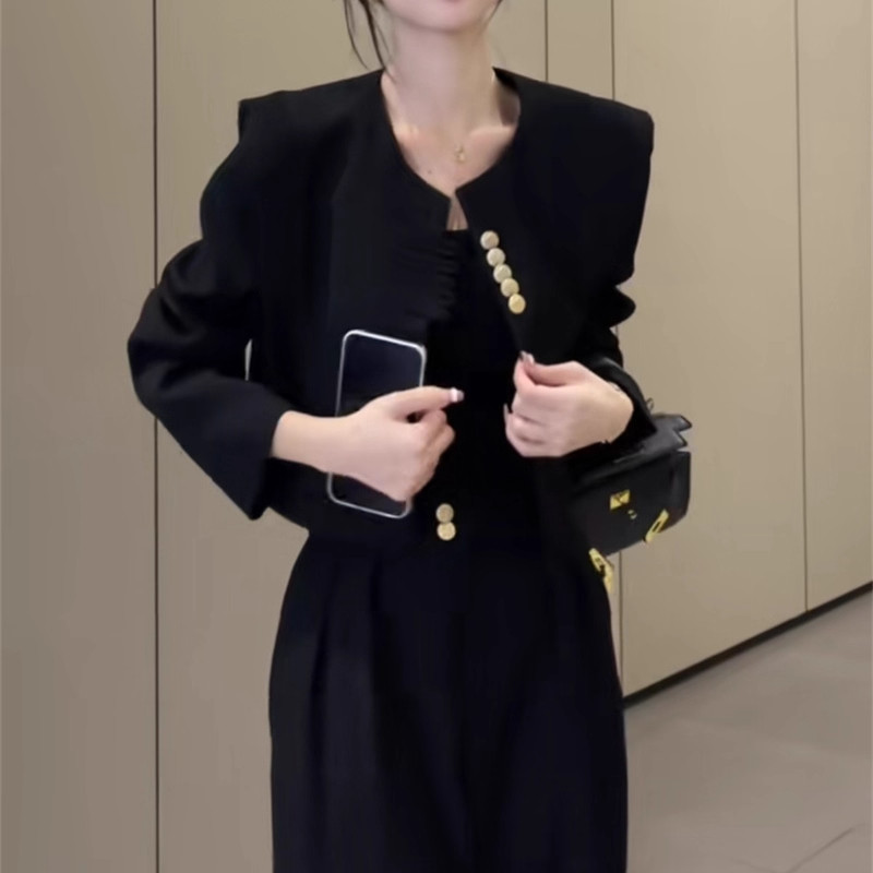 淘宝网红爆款国风西装套装女秋新款气质时尚盘扣外套高腰阔腿裤两件套