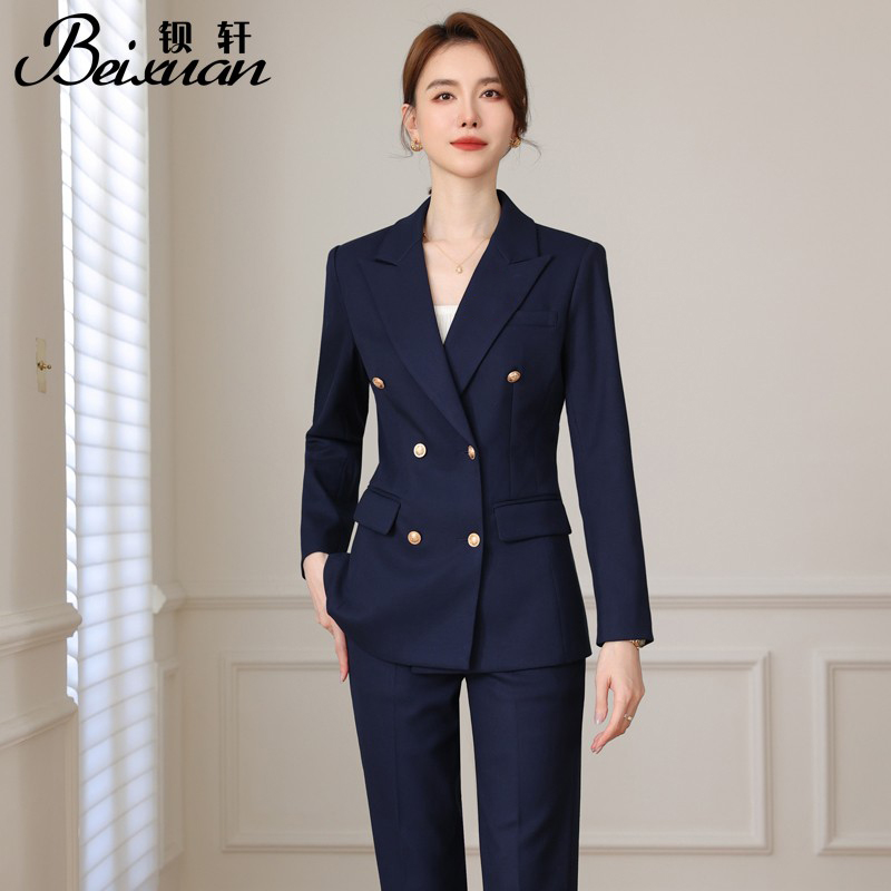 春秋款深蓝色西装外套时尚设计感修身休闲长袖西服女品牌折扣清仓