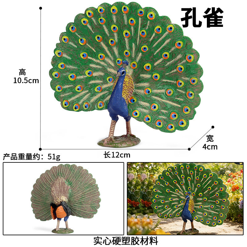 淘宝儿童玩具仿真孔雀模型实心认知野生动物鸟类鹦鹉模型塑胶装饰摆件