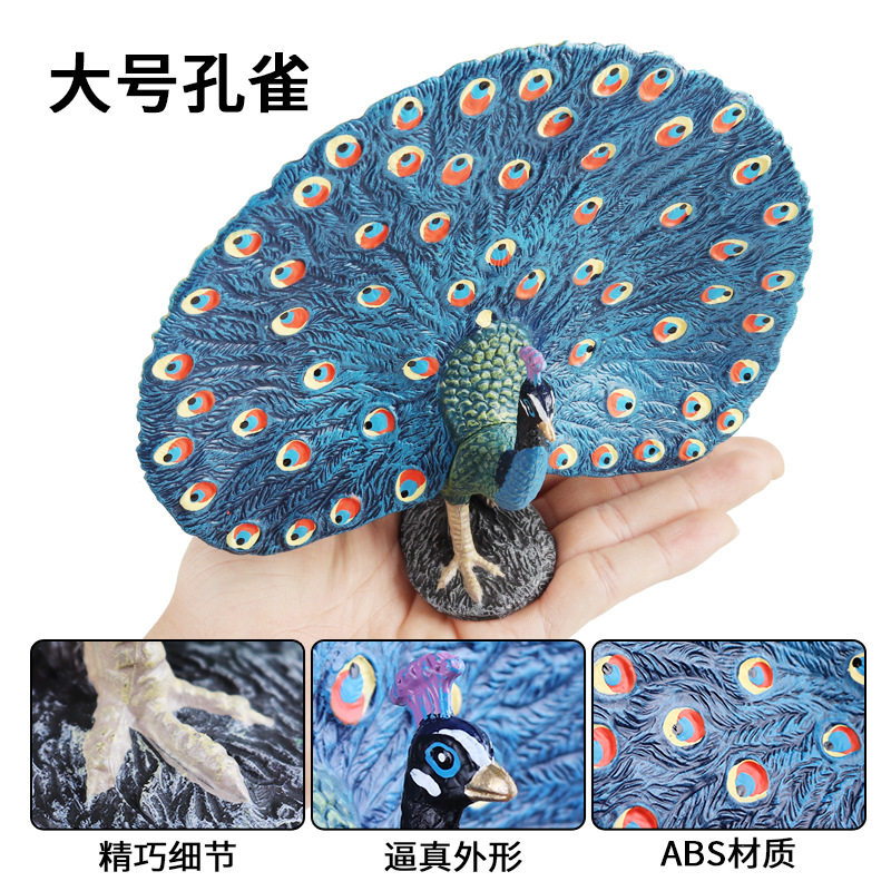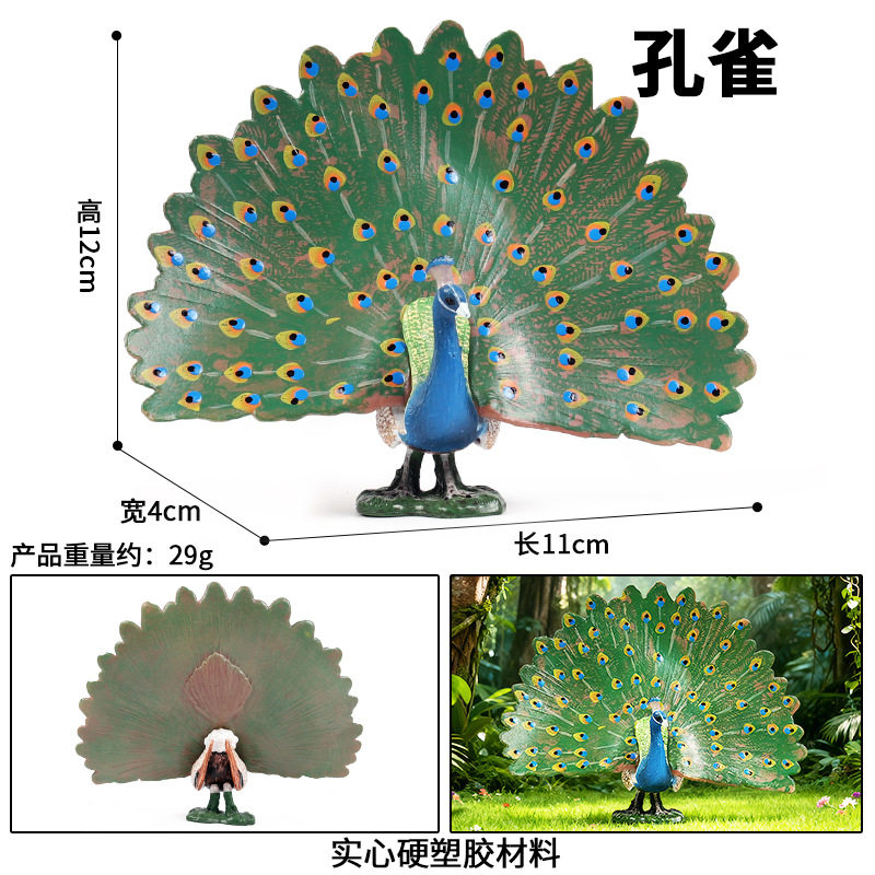 淘宝儿童仿真动物玩具实心野生动物模型蓝孔雀绿孔雀鸟类认知鹦鹉摆件