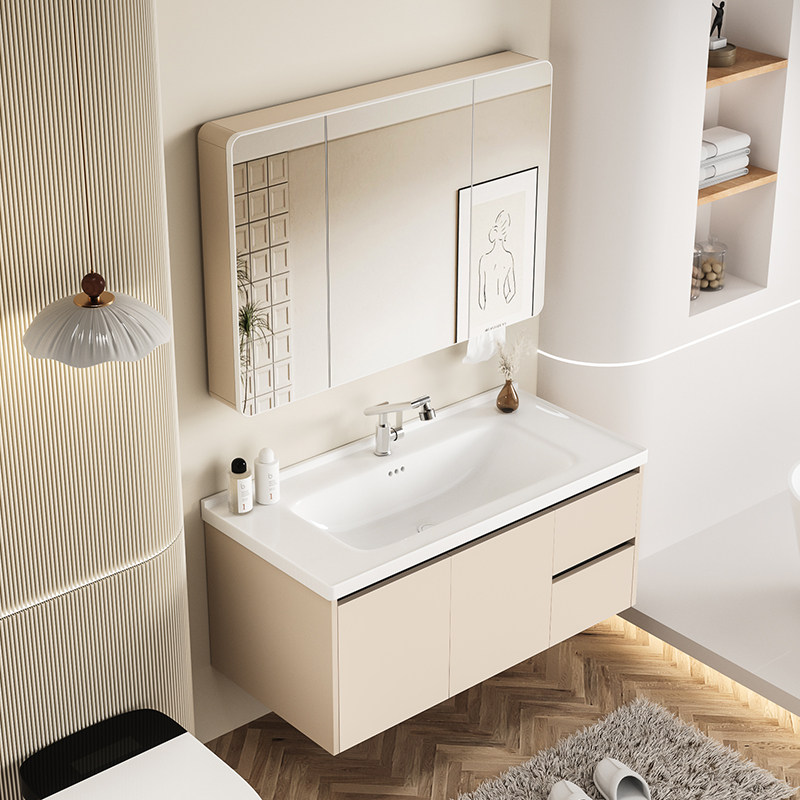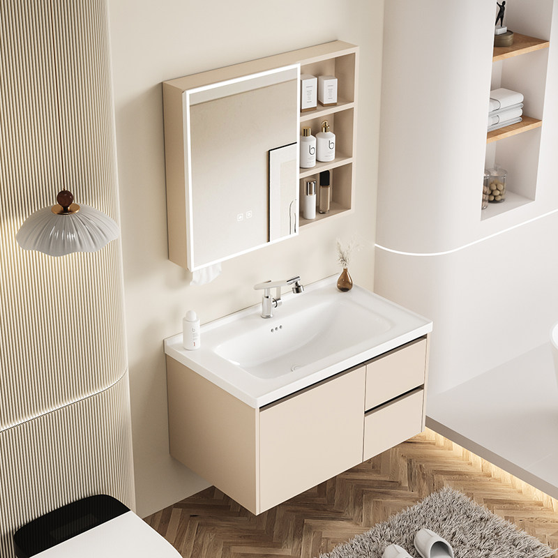 淘卫生间轻奢简约浴室柜组合卫浴纳米一体盆洗手脸盆白色洗漱台套装