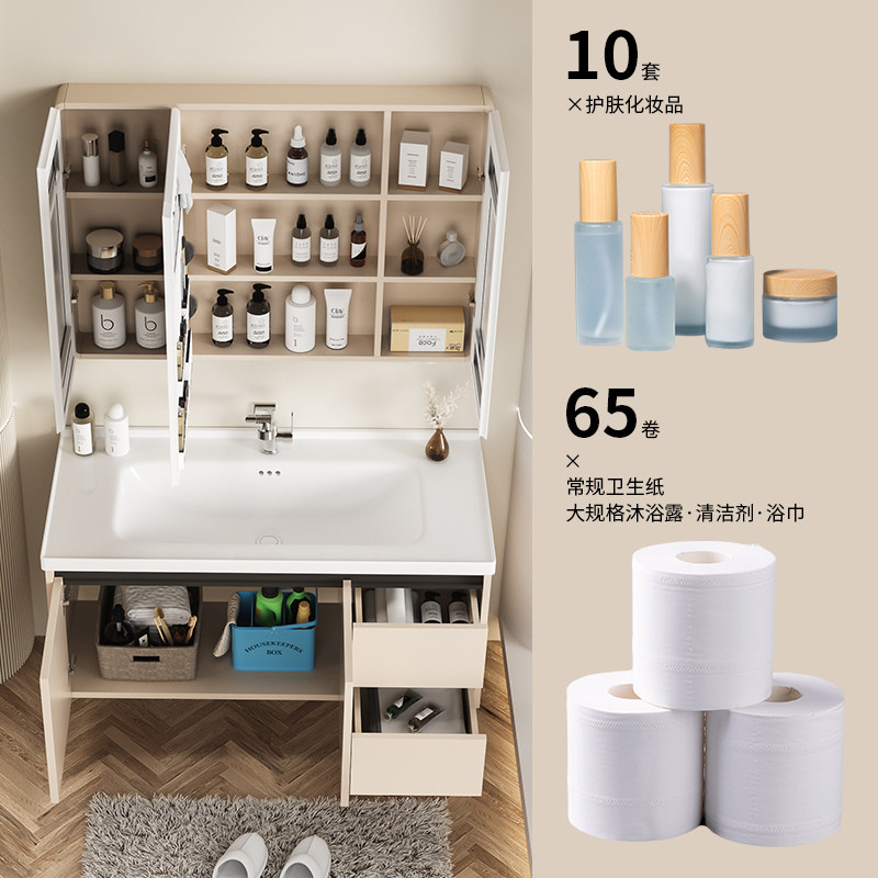 淘奶油风加厚蜂窝太空铝浴室柜卫生间洗手盆柜组合陶瓷一体洗脸盆柜