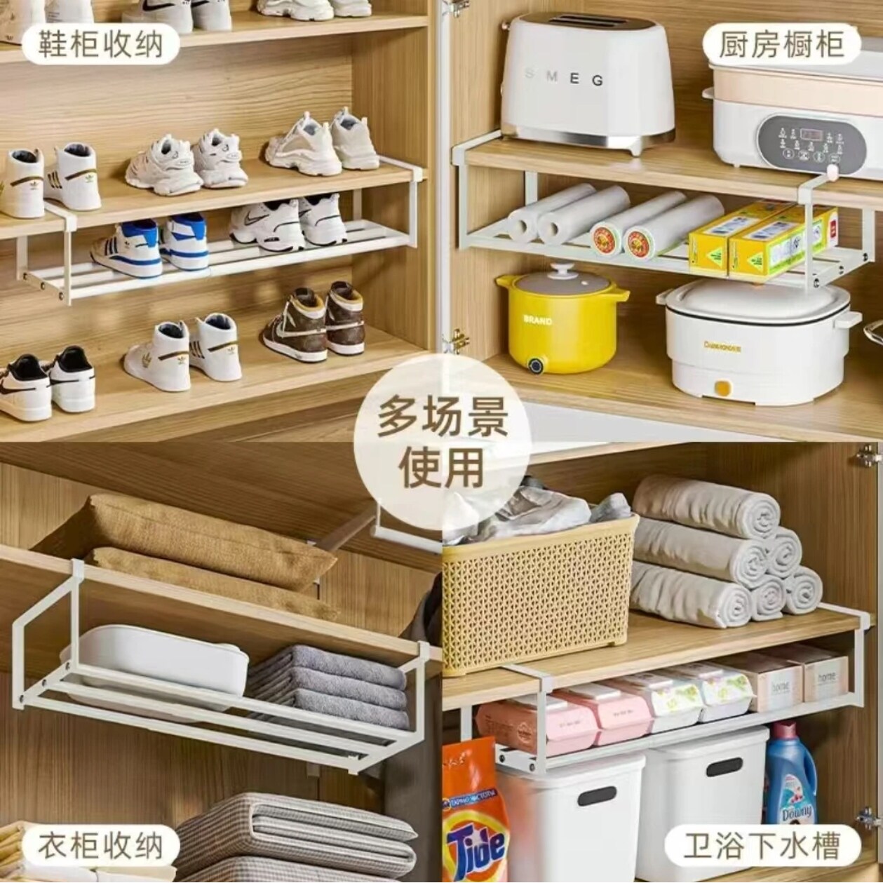 淘宝可伸缩分层脸盆隔板下挂篮免打孔家用加高柜鞋架易安装浴室置物架