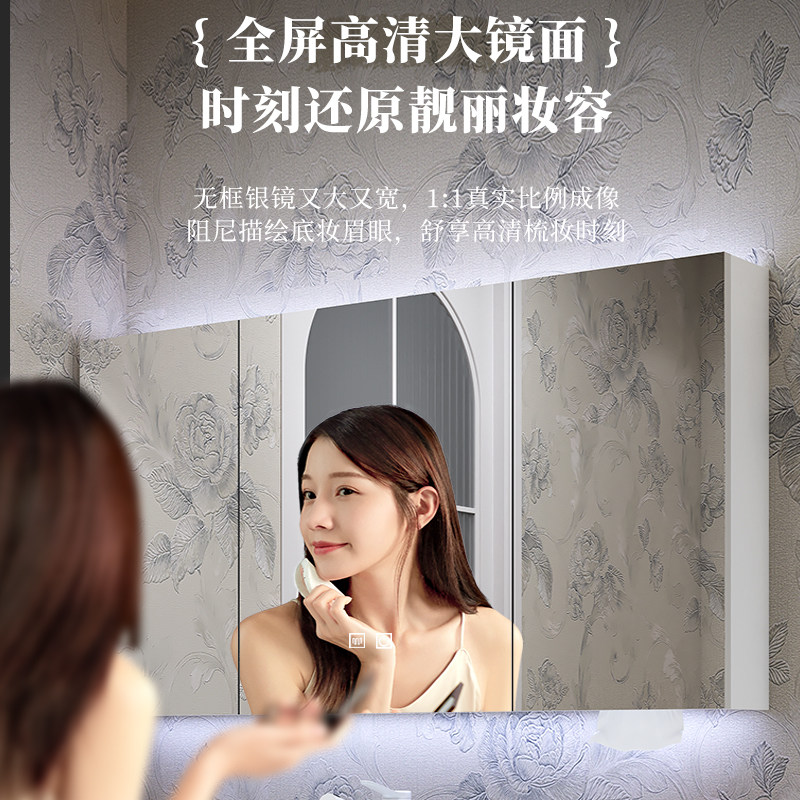 淘智能浴室镜柜卫生间挂墙式镜箱带灯浴室镜单独收纳一体柜带置物架