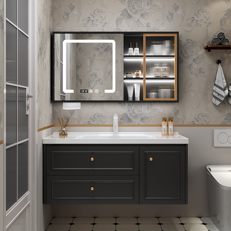 淘宝陶瓷一体盆浴室柜组合洗脸手台盆池卫生间洗漱台智能简约现代轻奢