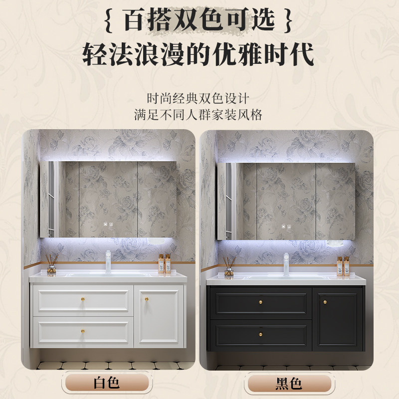 天全友家居新款法式智能浴室柜组合卫生间陶瓷一体盆卫浴柜洗漱台KZ