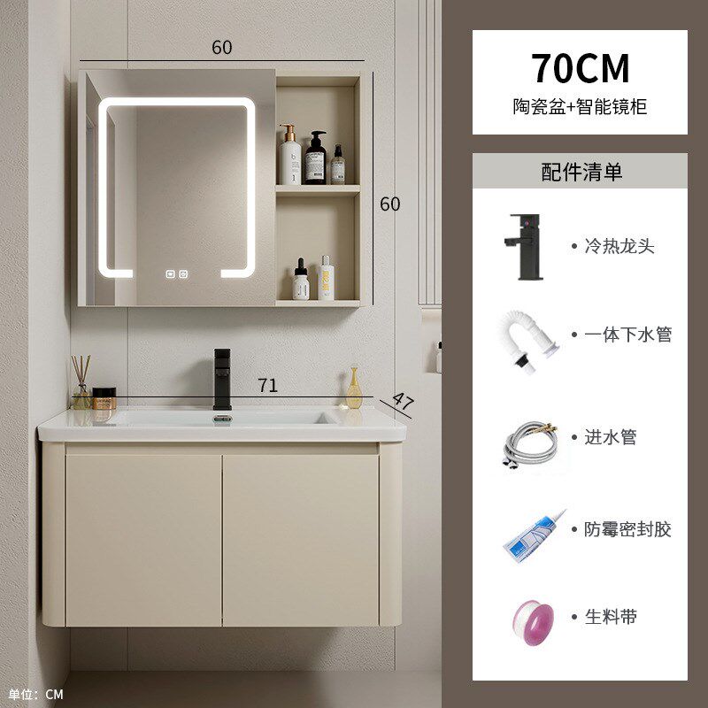 陶瓷一体盆浴室柜组合洗脸手台盆池卫生间洗漱台智能简约现代轻奢
