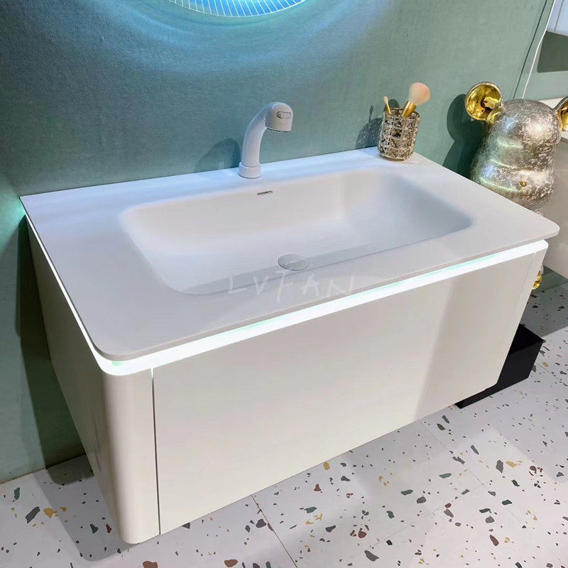 卫生间轻奢简约浴室柜组合卫浴纳米一体盆洗手脸盆白色洗漱台套装