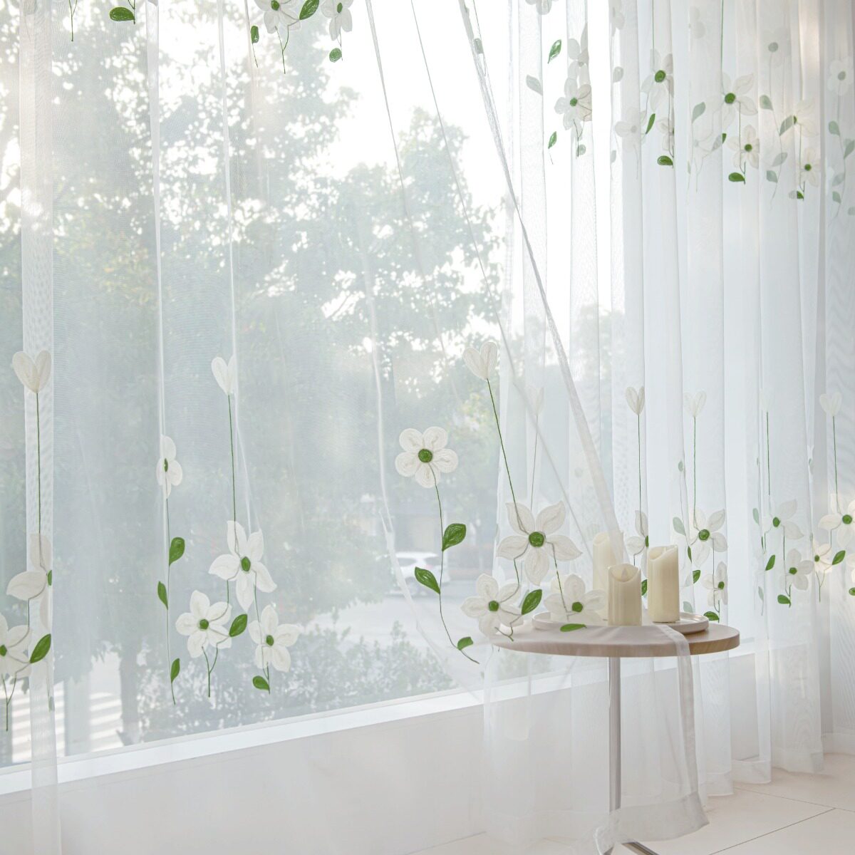 淘宝纱帘透光不透人田园清新绣花窗纱客厅卧室阳台防晒魔术贴挂钩窗帘