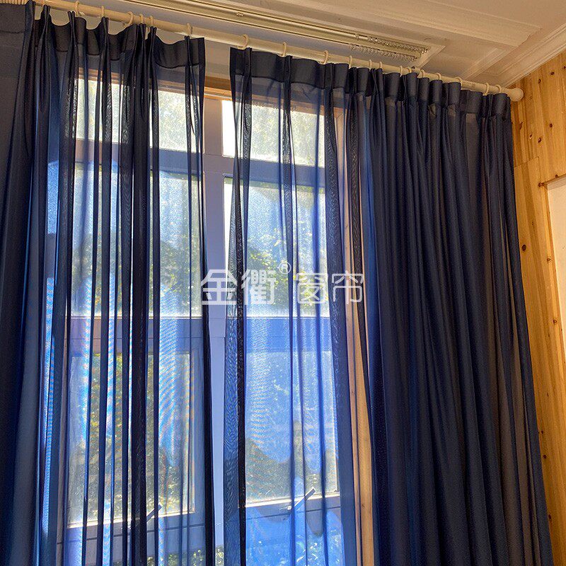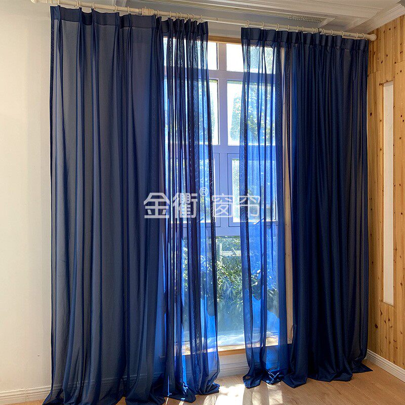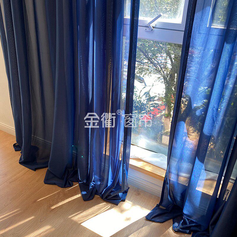 淘宝厚重高贵钴蓝色抗皱客餐厅垂坠琥珀蓝窗纱丝滑米克诺斯蓝纱帘