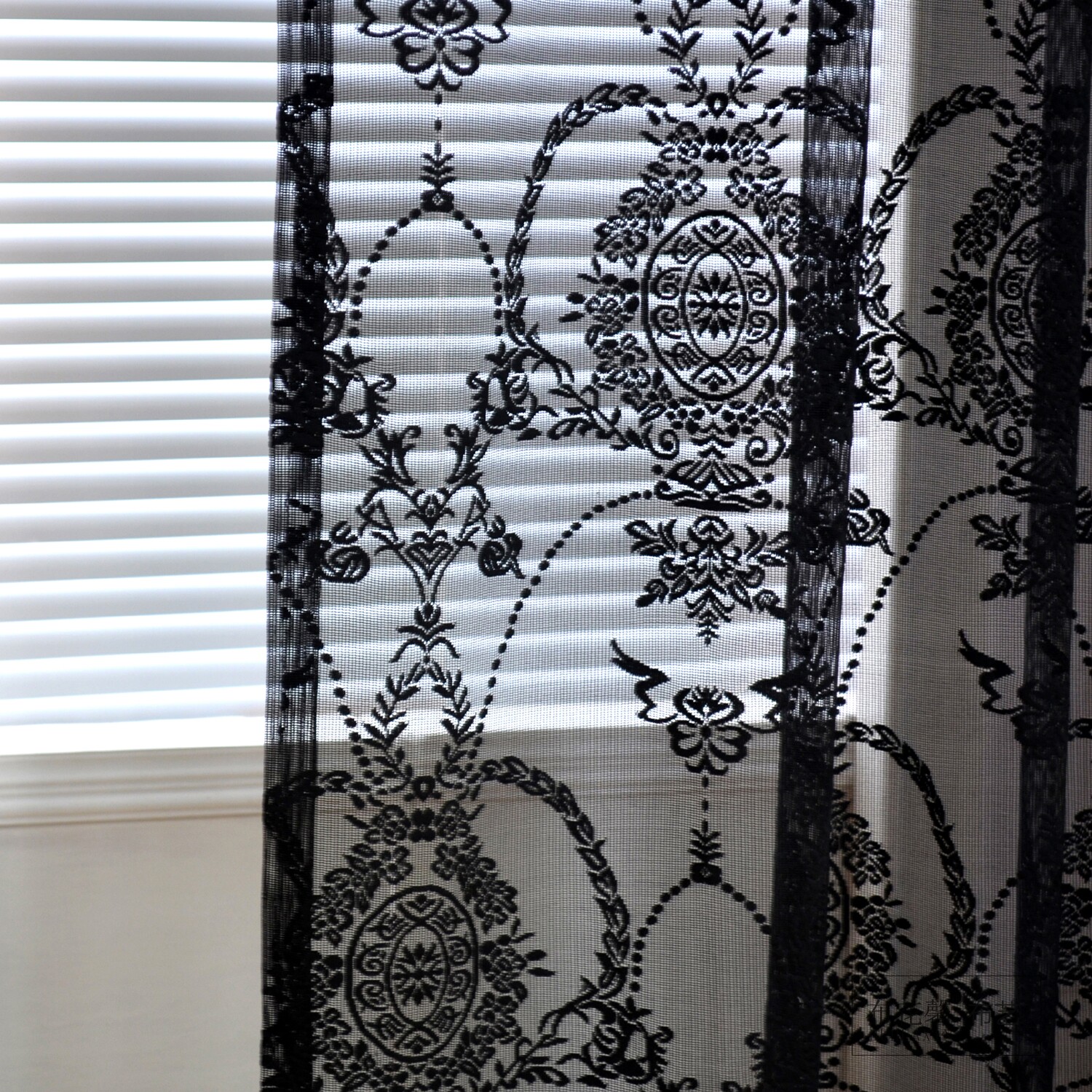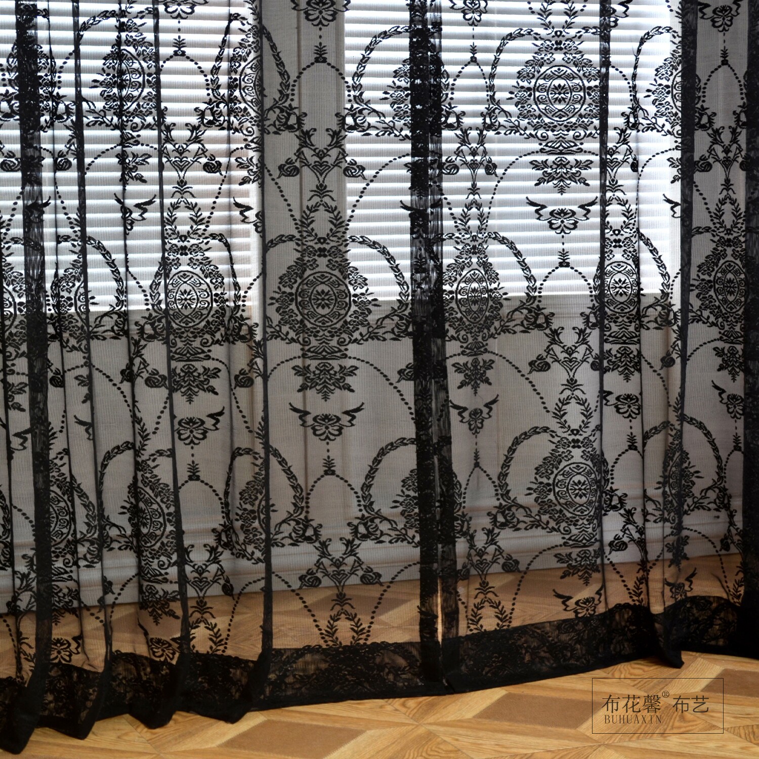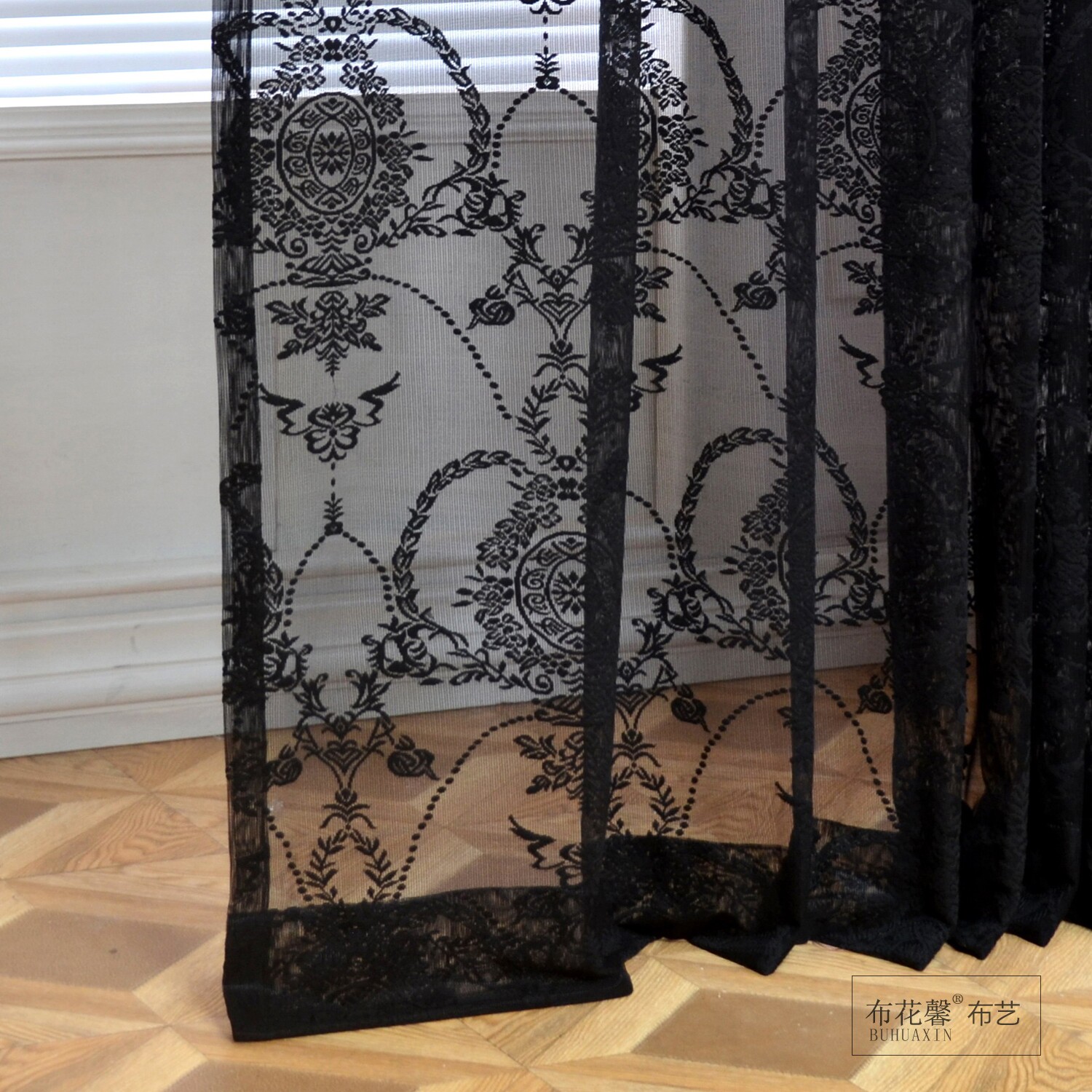 淘宝北欧别墅客厅落地窗橱窗黑色蕾丝纱帘透光窗纱窗帘成品定制