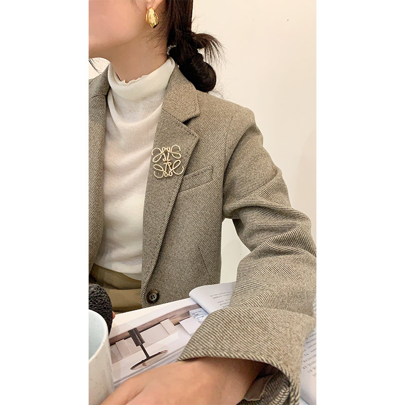 英伦复古风宽松短款羊毛毛呢西装外套女秋冬季新款呢子通勤小个子