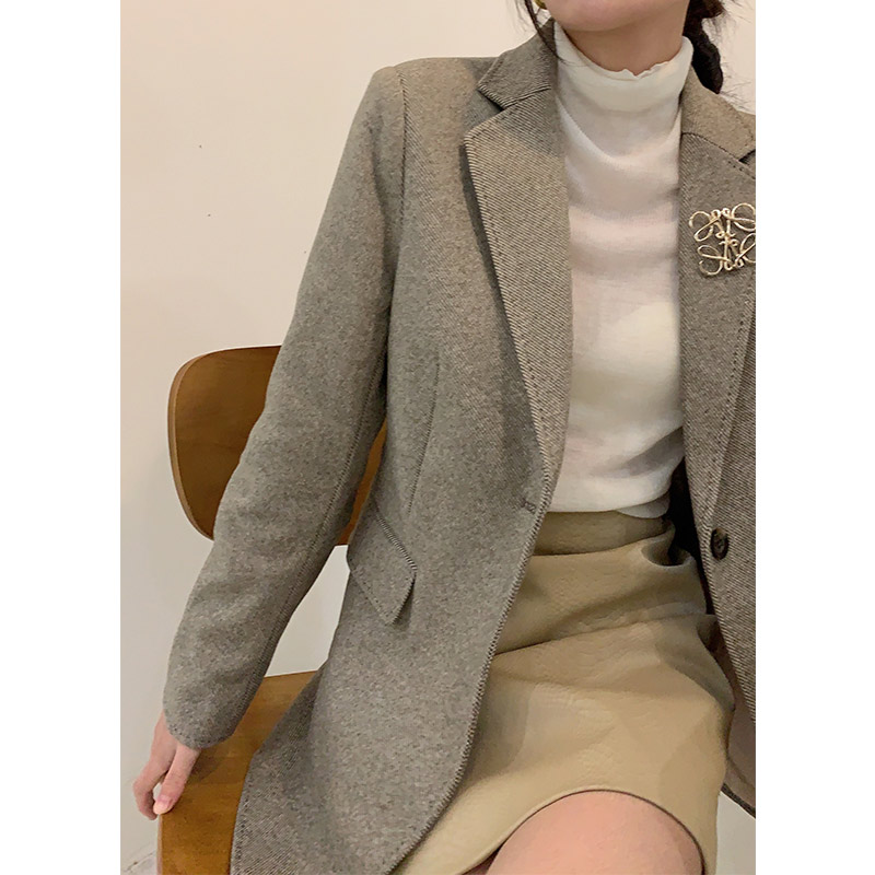 2025秋季新款女装外套日系小众简约慵懒风宽松中长款羊毛外套西服