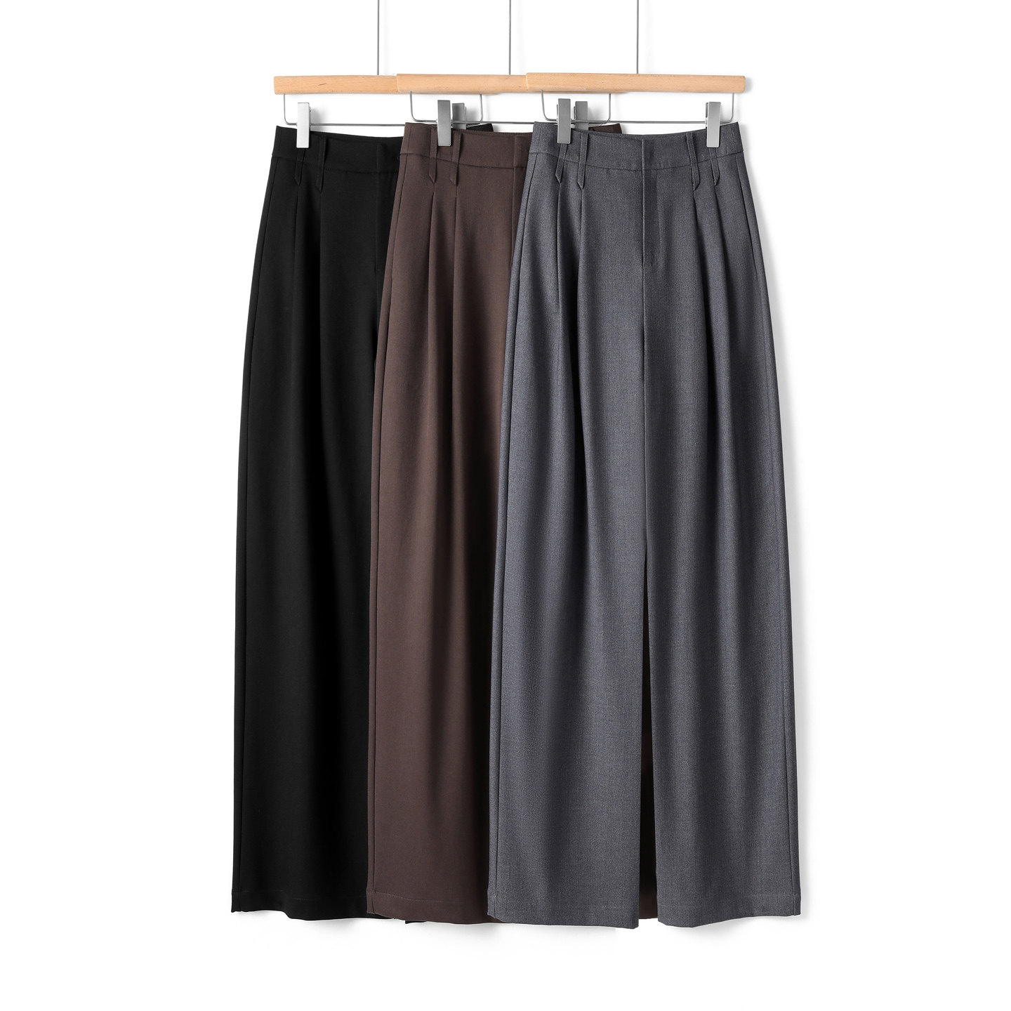 淘宝松弛感~含羊毛高腰通勤捏褶显瘦垂感阔腿西装裤直筒休闲长裤女