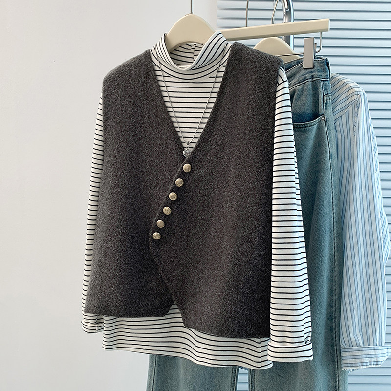 这款高级感针织马甲专为女性设计,融合法式气质与简约风格。采用洋气的西装背心叠穿设计,短款V领外形,既展现女性的优雅魅力,又兼具时尚感。外搭上衣的针织马甲设计,使得整体穿着更加舒适自在。这款马甲适合多种场合穿着,无论是休闲还是正式活动,都能展现出女性的独特韵味。简约而不简单的设计,让你在人群中脱颖而出,展现你的时尚态度和优雅气质。