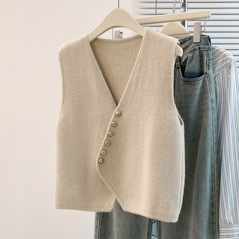淘宝高级感针织马甲女法式气质简约洋气西装背心叠穿外搭上衣短款V领