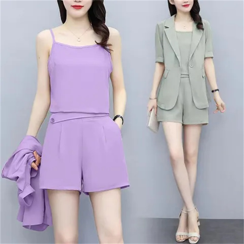 2025年夏季新款大码女装三件套,专为胖MM打造,兼顾时尚与舒适。精选高弹透气面料,轻盈亲肤,轻松应对炎热天气。设计巧妙遮腹收腰,立体剪裁凸显身形曲线,视觉显瘦不紧绷。套装包含时尚西服外套、内搭背心与高腰A字短裤,可分可合,搭配灵活,轻松穿出洋气减龄感。色彩清新雅致,细节精致,如微喇袖口、隐形口袋等,兼顾实用与美感。无论是通勤、约会还是休闲出行,都能展现自信优雅气质,让每位大码女性穿出属于自己的夏日风采。