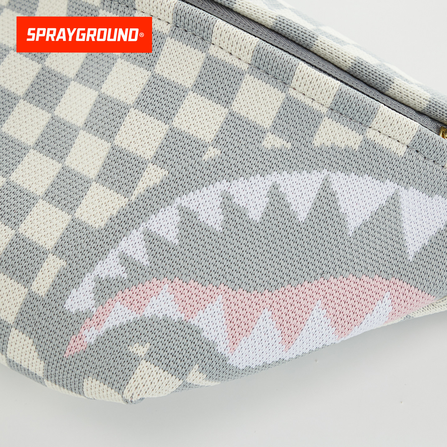 天猫SprayGround鲨鱼嘴25新款灰白棋盘格胸包潮流运动休闲斜挎包腰包